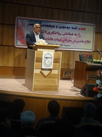 پس از تلاوت آیاتی چند از کلام ا... مجید، سرود ملی و مداحی اهل بیت(ع)، کلانتری مدیر حج و زیارت استان ضمن خوشامد گویی به تمامی میهمانان، بیان کردند در پی تفاهمنامه ای که با سپاه پاسداران استان امضا شد مقرر گردید جهت بیان ایثارگریهای هشت سال دفاع مقدس در مسیری که زائران به عتبات مشرف می شوند سپاه استان راویانی با اتوبوسهای زائران عتبات استان ارسال نماید تا در مسیرهایی که زائران این استان به عتبات مشرف می شوند خصوصاً در مرز مهران به بیان این ایثارگریها بپردازند. ایشان هدف از این همایش را ایجاد زمینه برای بیان فداکاریهای شهدا از زبان راویان بیان کردند و گفتند:ما باید بدانیم در مسیری که به عتبات به سهولت مشرف می شویم مدیون ایثارگریهای چه کسانی هستیم و با این کار گوشه ای از فداکاریهای آن عزیزان را به جامعه نشان می دهیم.
