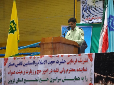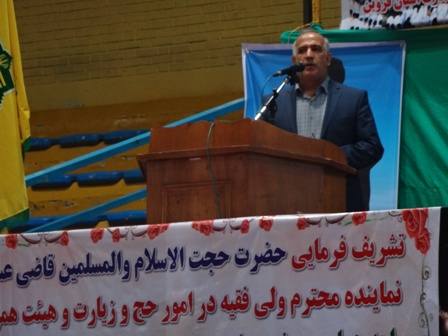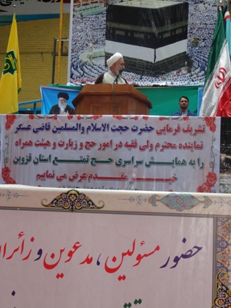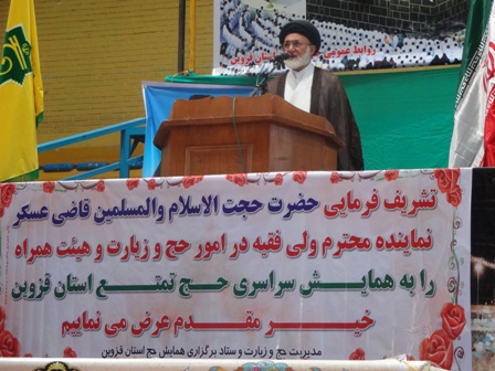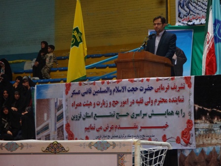 حجت الاسلام و المسلمین عابدینی نماینده ولی فقیه و امام جمعه قزوین نیز دقایقی در خصوص اهمیت این سفر معنوی به ایراد سخنرانی پرداختند. ایشان سوغات سفر حج را زُهد و تقوا دانسته و بیان داشتند مهمترین سوغات حج ولایت مداری است که اگر ولایت را از حج جدا نمائیم حج معنی خود را از دست خواهد داد و ولایت همانند قلب در بدن است که اگر لحظه ای به وظیفه خود عمل ننماید کل بدن نیز آسیب خواهد دید. پس بنابراین بایستی حج بر محور ولایت باشد.