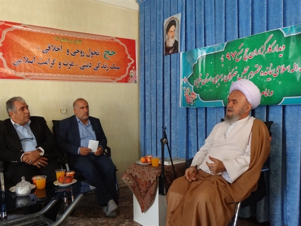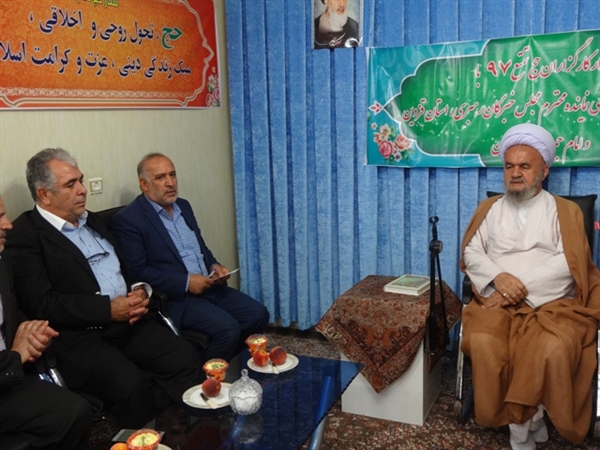 سپس  آیت ا.. اسلامی نماینده مردم قزوین در مجلس خبرگان و امام جمعه تاکستان که خود نیز از روحانیون باتجربه و باسابقه حج، عمره و عتبات عالیات می باشند ضمن ذکر تلبیه و خوش آمدگویی به حاضرین، با بیان حدیثی، خدمتگزاری به زائرین و  استفاده از این فرصتها را موهبت الهی دانسته و بیان داشتند خدمت به زائرین بیت ا.. الحرام و ائمه اطهار(ع) برکت عظیمی در زندگی انسان ایجاد می نماید.